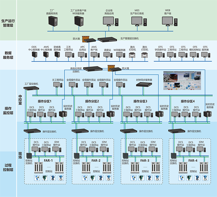 實(shí)現(xiàn)生產(chǎn)流程監(jiān)視、生產(chǎn)過程控制、生產(chǎn)設(shè)備維護(hù)、設(shè)備故障診斷和緊急事故處理;
