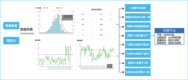 SPC(Statistical Process Control,統(tǒng)計過程控制)應(yīng)用統(tǒng)計分析技術(shù)對生產(chǎn)過程進(jìn)行實時監(jiān)控,科學(xué)的區(qū)分出生產(chǎn)過程中產(chǎn)品質(zhì)量的隨機(jī)波動與異常波動,從而對生產(chǎn)過程的異常趨勢提出預(yù)警,以便生產(chǎn)管理人員及時采取措施,消除異常,恢復(fù)過程的穩(wěn)定,從而達(dá)到提高和控制質(zhì)量的目的。