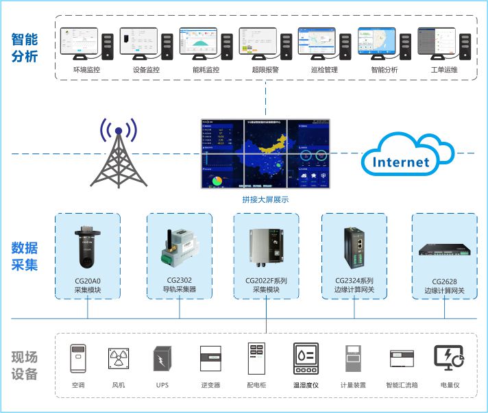 支持多種通信和傳輸協(xié)議,保證上位機(jī)與設(shè)備可靠連接,數(shù)據(jù)實(shí)時(shí)傳輸?shù)接脩舻?G基站智能監(jiān)控運(yùn)維數(shù)據(jù)中心;